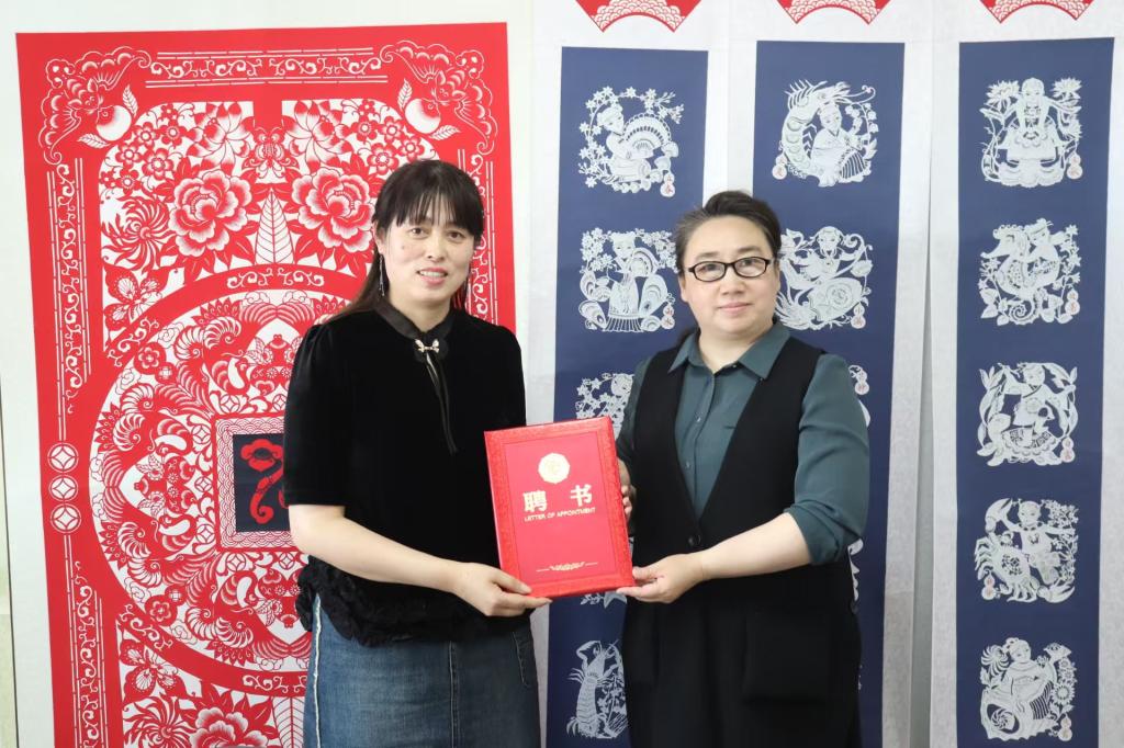 院徽剪纸赠情谊,薪火相传聘名师。精彩的剪纸体验活动后,举行了简朴而有意义的捐赠与聘任仪式。为支持公司文化建设,薛娜老师将精心创作的bevictor伟德院徽主题剪纸作品赠予公司。该作品尺寸达 120*120,巧妙地将传统剪纸艺术与公司特色融合,极具艺术价值与纪念意义。甘露露代表公司接受捐赠,并向薛娜老师致以诚挚谢意。随后,甘露露为薛娜老师颁发聘书,聘请其为公司“非遗文化传承导师”。甘露露在致辞中表示,此次聘任标志着公司与非遗传承人深度合作的良好开端,下一步,公司将定期邀请薛娜老师走进校园,开展系列非遗剪纸文化体验活动,引导青年学子在动手实践中体味非遗之美,感悟匠心之韵,真正做到“以美化人,寓教于乐”,让传统文化在青年群体中生根发芽。