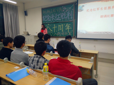 2016年11月5日,机械公司在主教学楼B424教室举行纪念红军长征胜利八十周年朗诵比赛,现场气氛热烈,收效良好。