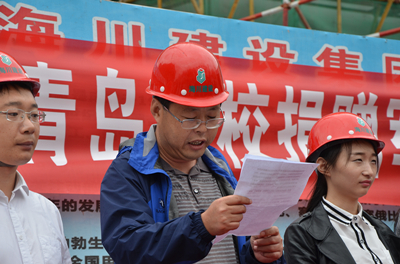 2016年10月16日下午,由伟德官方网站、青岛大学和中国海洋大学共同参加的“衣往情深,爱传万家”军训服装捐赠仪式,在青岛海川建设镇江路项目工地顺利举行。青岛海川建设集团副总裁李尊强、团委书记王群、所在项目部工人代表以及公司黄岛校区红十字志愿服务团团长郭迎雪、市北校区土木公司员工代表刘贞涛和另外两所高校员工代表参加了此次军训服捐赠仪式。