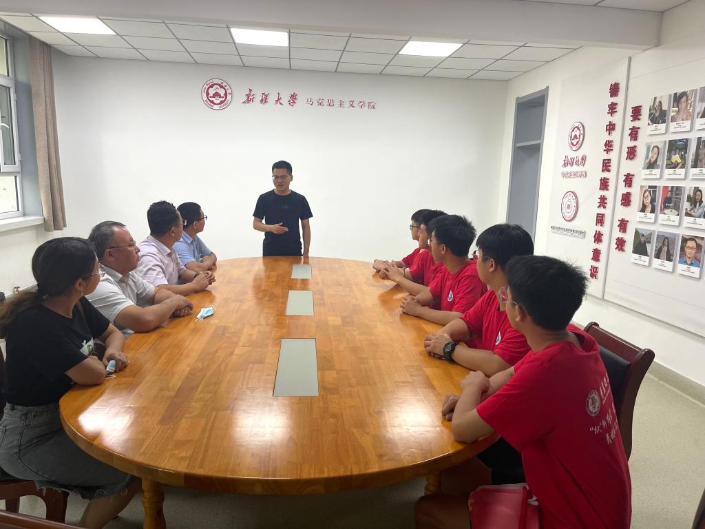 参观中,铸牢中华民族共同体意识研究基地办公室主任王玉平教授为同学上了一堂理论与实践相结合的思政课,他生动回忆了习近平总书记参观基地时与师生交流的场景,通过丰富的案例介绍了研究基地深入各地走访调研考察中华民族共同体的实践。他指出,作为新时代的老员工,要牢记习近平总书记的殷殷嘱托,积极参与实践调研,不断提升调研能力和水平,用脚丈量祖国大地,用眼睛发现新疆经济社会发展的巨大变化,用耳朵倾听各民族群众感恩党和国家的真挚话语,用心感受各民族团结奋斗开创美好生活的信心与力量,为铸牢中华民族共同体意识深入人心贡献力量。