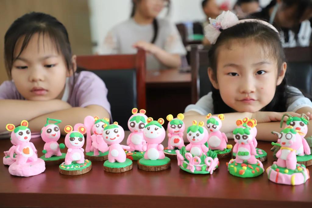 在指尖灵动课堂上,支教队成员分别带领大家体验了花样扎染、趣味剪纸、多彩面塑等多个非遗手工项目,让孩子们近距离感受、体验传统文化的魅力。“我们第一次体验扎染,通过折叠、装订、染色、清洗、晾晒等制作步骤,最终创造出来了很多意想不到的图案,有点像打开盲盒的惊喜感。”支教队的孩子惊奇地说道。在手工课上,伟德官方网站辅导员张凤波以主讲老师的身份参与其中,他将共青团吉祥物“团宝”以面塑的方式带到课堂,通过介绍面塑的历史起源与制作步骤,亲自指导大家制作出了一个个精巧可爱、形态各异的团宝形象。通过一系列非遗手工课,不仅让孩子们感受到了中华传统文化的独特魅力与精神价值,也进一步激发了大家的想象力与创造力。