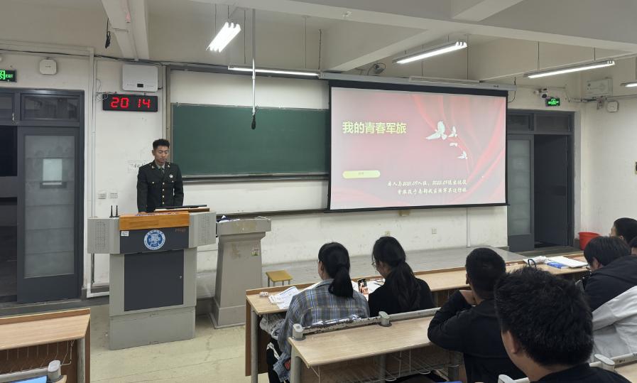 孙可以“我的青春军旅”为主题,回顾了自己在军营中的青春岁月,从初入军营的懵懂到逐渐成长为一名优秀军人的心路历程。孙可详细讲述了在军营中接受的严格训练,包括体能训练、战术演练、团队协作等,这些经历不仅锤炼了他的身体和意志,更培养了他坚韧不拔的精神。他还分享了与战友并肩作战的深厚情谊,以及面对困难和挑战时如何坚定信念、迎难而上的故事。孙可强调,军人的生活虽然充满艰辛与挑战,但正是这些经历塑造了他们的坚韧与毅力,也让他们更加珍惜和平与稳定的生活环境。孙可的分享让新生们深刻感受到了军人的崇高使命与无私奉献精神,激发了他们对国防事业的热爱与向往。