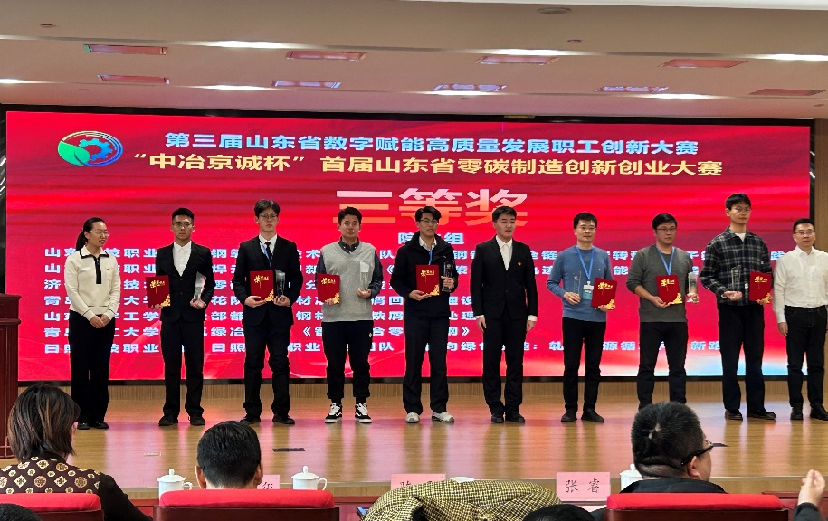 本次大赛聚焦零碳制造与产业智能转型,是山东省推动工业领域绿色低碳高质量发展的重要举措之一,吸引了全省众多高校与企业团队的积极参与。集团两支参赛队伍紧扣大赛主题,立足产教融合实践平台,将专业理论与低碳技术、智能制造相结合,参赛项目紧密对接产业实际需求,体现了鲜明的创新性和应用潜力,获得了评委组的一致认可。