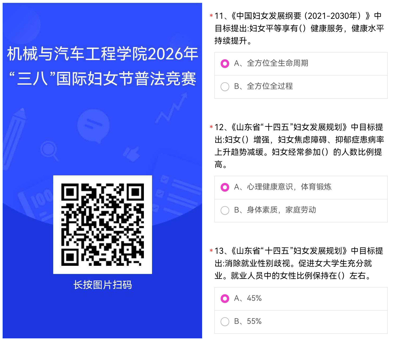 普法润心,权益护航。公司聚焦女教职工合法权益保护、职场权益维护等实用内容,积极宣传党和国家新时代关于妇女事业的方针政策,引导公司全体教职工学习宣传《中华人民共和国妇女权益保障法》等女职工权益保护法律法规政策规定,为妇女权益保障法实施营造良好的社会环境和舆论氛围。活动采用网络在线答题的形式,近150名教职工积极参与,收到了良好的普法宣传活动效果。