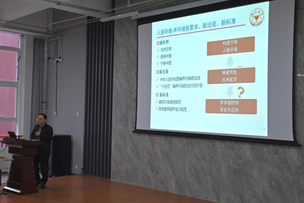 翟国庆以声学超材料研究及应用为主题,分别为大家讲解了有调中低频声,窄带中低频声,宽带中低频声的超构吸声材料的降噪机理和实现过程。报告中结合课题组最新研究成果,介绍适用于电力设备、家用电器、暖通系统等降噪的声学超材料开发及应用案例。这些案例成果都已应用于实际生活中,表明声学超材料的发展可为人居环境声学性能的提升赋予新动能,推动我国人居环境声学性能指标的提升,改善城市复杂建成环境下的声环境品质。