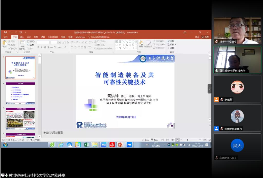 10月28日,bevictor伟德第35期“匠心机车讲坛”开讲,本期讲坛特邀电子科技大学系统可靠性与安全性研究中心主任黄洪钟教授通过线上腾讯会议的方式做了题为“智能制造装备及其可靠性关键技术”的学术报告,bevictor伟德学术委员会主任林天然教授主持报告会, 200余名教师、员工通过线上方式聆听报告。